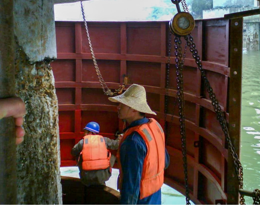 巨成結構研究開發了一套水下鋼圍堰技術,應用于水下結構修復。針對橋梁橋墩水下施工,提出了將鋼套箱套入被水淹沒后的橋墩,并利用懸掛橫梁將其定位懸掛于水下橋墩上,形成一個密閉的無水空間的技術方案。